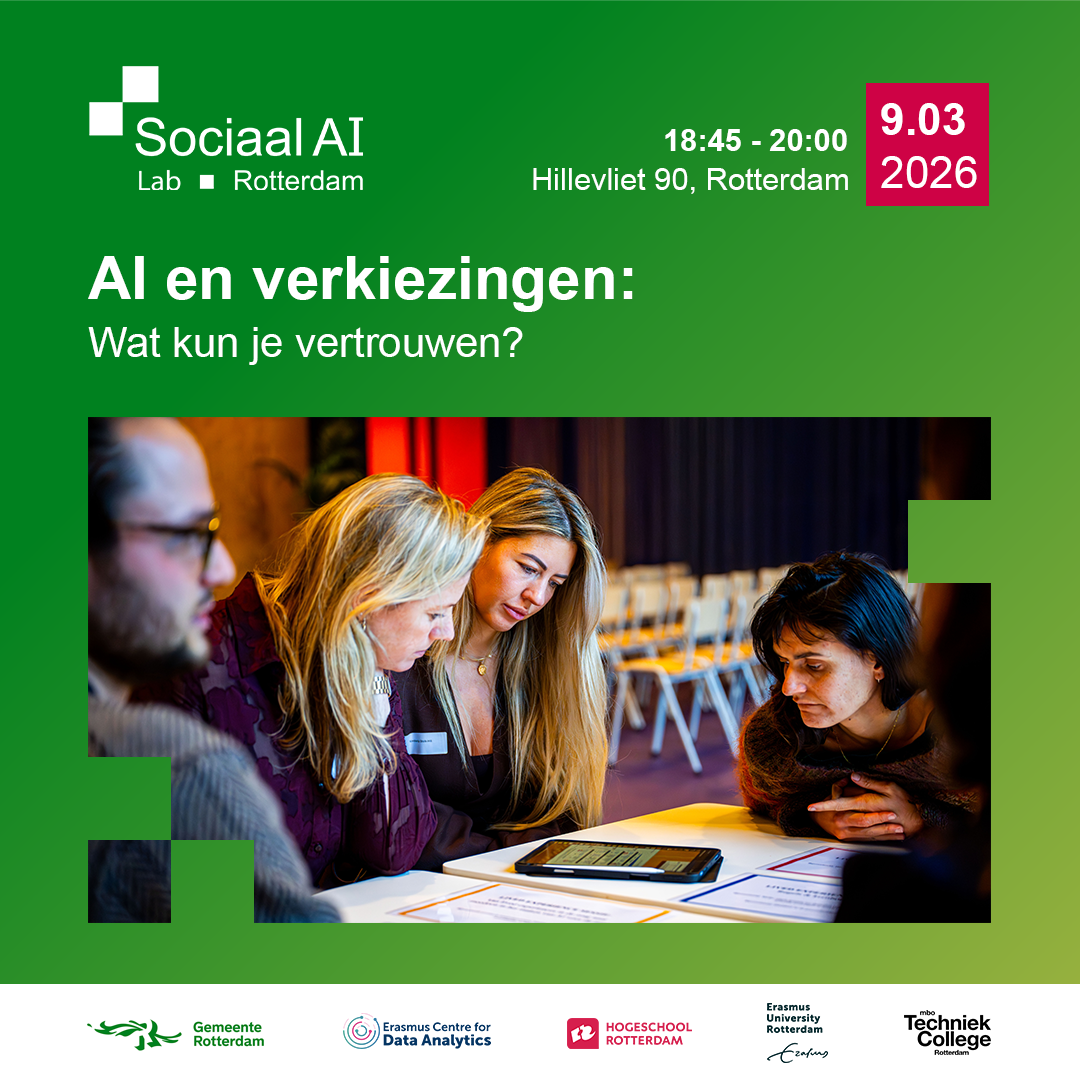 Tijdens deze avond in het Sociaal AI Lab Rotterdam gaan we in gesprek. We bespreken hoe AI invloed kan hebben op verkiezingen. En wat nodig is om chatbots zo eerlijk mogelijk te gebruiken.